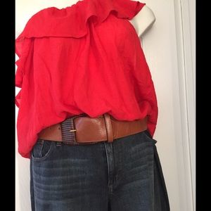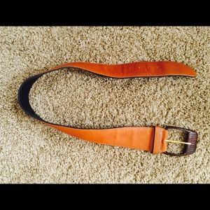 "A XCESS" WIDE LEATHER BELT- COGNAC & CHOCOLATE. 35"BEAUTIFUL AND UNIQUE DESIGN. BELT BUCKLE IS HAND CRAFTED. "READY TO BUNDLE"