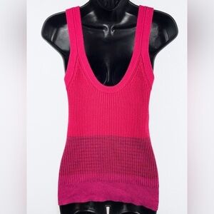 Cable knit, ribbed, color blocked, ombré, dyed, scoop neck tank, summer, bright, fuschia, magenta, jewel tone, tops for women shirts for women, blouses, casual, brunch outfit, garden party, Eileen Fisher, Maeve, T.La, Anthropologie, Elevenses, Ann Taylor, color block, pink shirt, pink top, loose fit, flattering