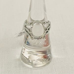 A clear white oval stone on a silvertone ring, US size 6 1/4-6 1/2, NEW