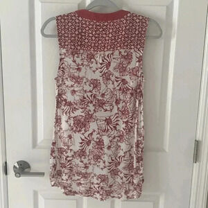 Embroidered placket at front Cute summer Boho tank with contrasting, print, red and white