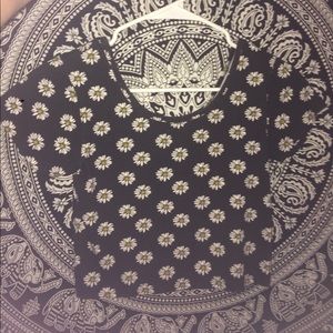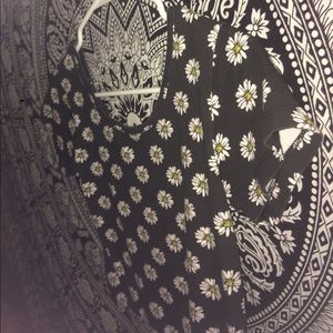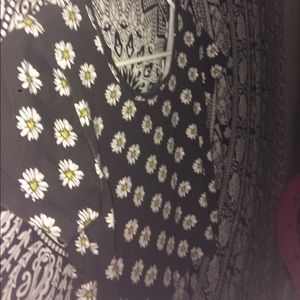It's a black crop top with sunflowers spread out on the shirt. Also is stretchy material. The shirt is in good condition!