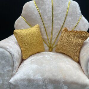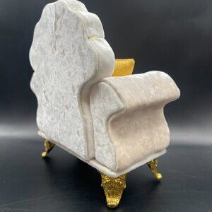 A custom-made armchair for Barbie. Crushed velvet in ivory with gold accents. Hand made by an artist. NIB and has never been used or displayed. *** Only the armchair is for sale, the Barbie is for size purposes ***