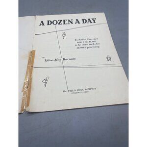 This used copy of "A Dozen a Day" by Edna Mae Burnam has a ripped cover. Published by Willis Music Company, it's a valuable resource for piano learners. Please see photos for condition details.
