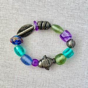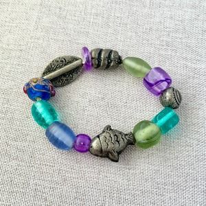 A fish of it's path mixed glass and acrylic beaded stretch bracelet