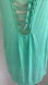 A beautiful MINE mint color tea with a surprise in the back. A braided design makes us top stand out. This top is longer in the back at 27 inches shorter in the front at 25 inches pit pit 16 inches. Size medium.