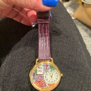 This gorgeous watch features pansies in a basket, a window frame, so many flowers, and so many gardening tools. Perfect for the gardener in all of us. A great gift for the holidays or anytime. It needs a new battery, but has never been used. It is brand new and comes from a smoke-free home.