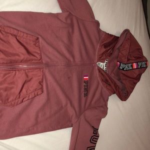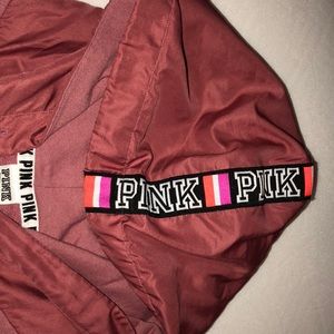 It is a pinkish jacket, that shows off the brand pink several times and is just a cute and nice jacket