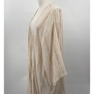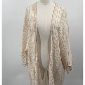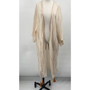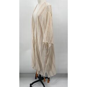A la Plage Cover Up Kimono Oversize Beaded Tassel Hem Metallic Stripe Ivory S