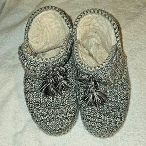 A la mode gray shimmery house booties w faux sheepskin. FITS 5 TO 6. EUC