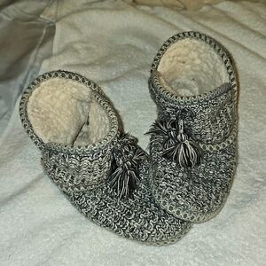 Super cute thick slippers/booties w tassels, sheepskin interior (faux) and rubber sole.