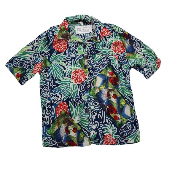 A laya Shirt Womens S Multicolor Floral Button Up Short Sleeve Collared Top