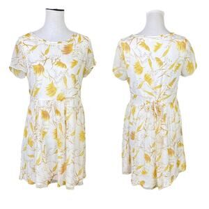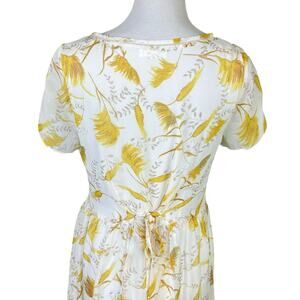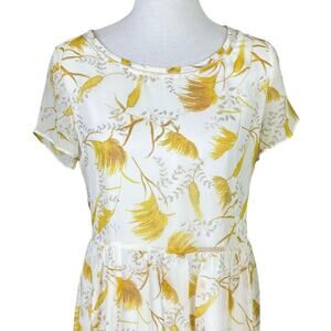 A loves A Gold Yellow Floral Wheat Novelty Print 100% Silk Mini Babydoll Dress