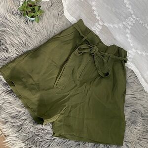 A New Day high waisted paper bag, army green shorts size 2. It has a small stain in the front, pictured.