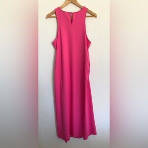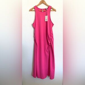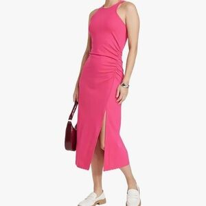 A new day pink sleeveless tank ruched ponte midi front slit dress