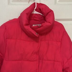 A new day puffer zip up jacket size small pink snap buttons stand-up collar