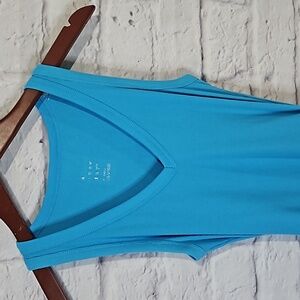 a new day new without tags size extra small bodycon rib knit v neck bright blue color could also be used for a maternity dress slits on both sides on bottom ruched sides approximate measurements laying flat length 42.5 pit to pit 12.5 inventory 2
