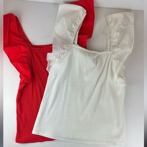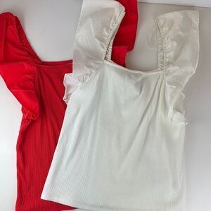 A new day top Bundle ruffled sleeve ribbed knit square neck top