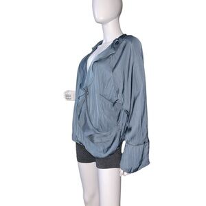NEW CONDITION This chic green wrap blouse is designed with a mini length, perfect for a professional yet stylish look. Its wrap style adds a touch of elegance, making it suitable for both work and casual settings. Pair it with your favorite bottoms for a versatile and fashionable ensemble.
