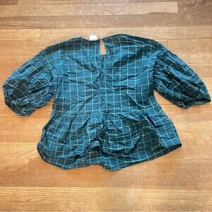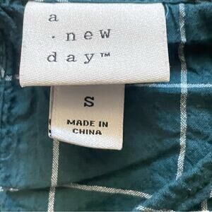 A new day women's green and white striped 3/4 sleeve blouse shirt top small B17