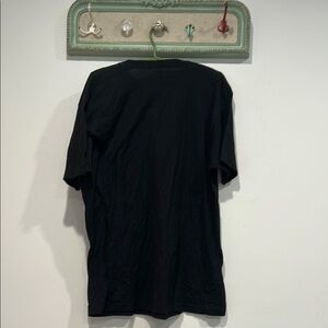 Black t-shirt featuring a graphic design with green text. Perfect for casual wear.