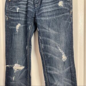A noname Jean Joelle Boot Cut Jeans Frayed destroyed Faded Denim Size 6 Like New