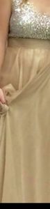 I bought this beautiful dress for $400 and am asking for $200. There are a few small strings hanging out by the zipper but they aren't very noticeable. I can take it to the dry cleaners if you'd like as well. Its a size ten but runs slightly small and can be brought in.