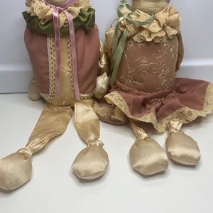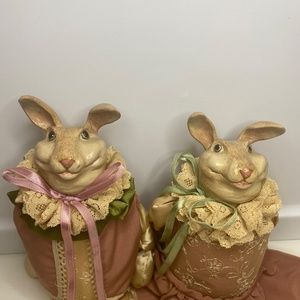 A pair Wayne Kleski Sitting Shelf Bunny Rabbit Dolls 14”.