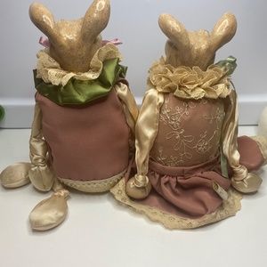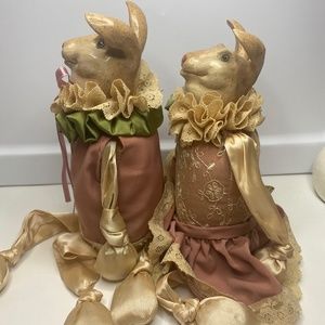A pair Wayne Kleski Sitting Shelf Bunny Rabbit Dolls 14”