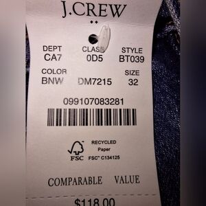 This is a pair of J.Crew ladies 9" demi-boot cropped jeans in a size 31. They're new with tags with no flaws (see pics). Denim, western, country, work, casual, streetwear. 17" waist, 11" Rise, 25" Inseam