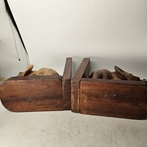this is a pair of wooden elephant bookends. they are heavy, and in great condition, they're unmarked on the bottom, but likely made in Kenya.