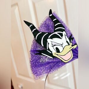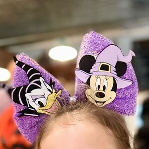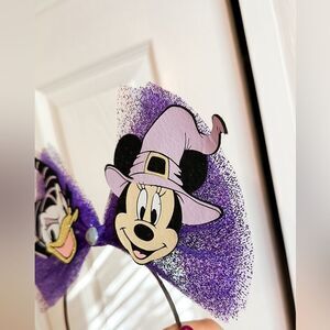 My daughter wore this to trick or treating last year and got so many compliments! Minnie witch hat is a little bent as well as daisy’s horn. Otherwise great condition!