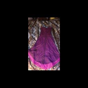 A purple and pink dress .