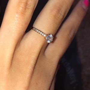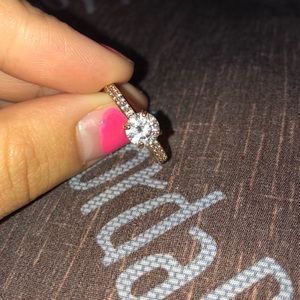 It looks better than it does in the pictures, it is very pretty. It is from swarovski and it is rose gold.