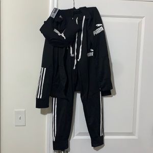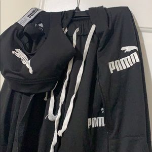 A set, brand new puma outfit and a nice fit for causal wear or workout session sports bra size- small, hoodie & pants are large. #puma