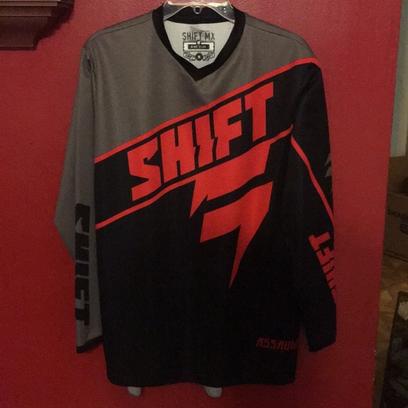 It is a shift assault racing jersey in good condition , their are some threads pulled but not a hole still a great jersey .