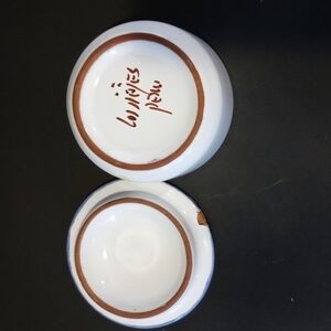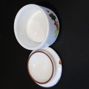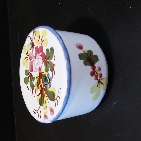 small hand painted trinket box porcelain .has two chips as shown in pictures above. signed