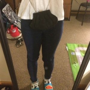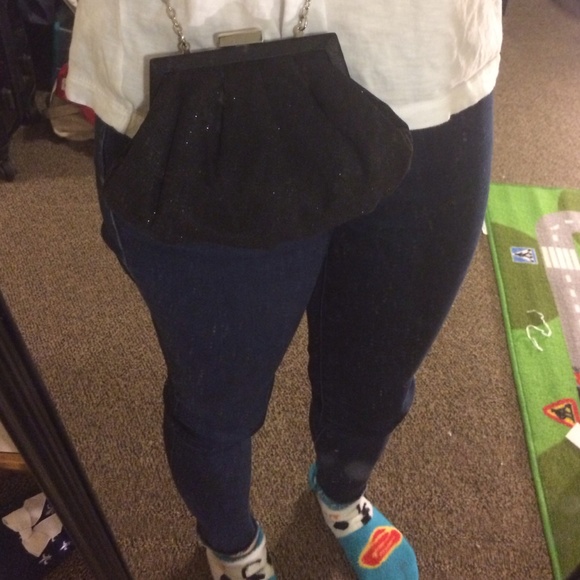 Great to go with your fabulous evening dress. It is a small black cross body purse with shiny detail