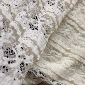 A Lacey crop top depending on how short or tall you are. Another piece of fabric underneath the stomach but 3/4 sleeves with lace.