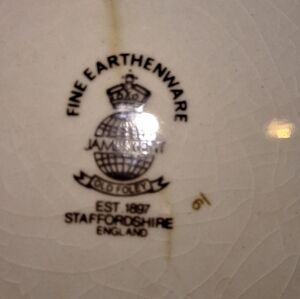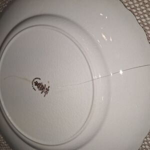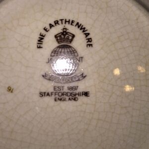 This is a vintage James Kent Old Foley Staffordshire saucer and plate. The saucer is discolored but in good shape, but the plate is cracked (see pics for condition).