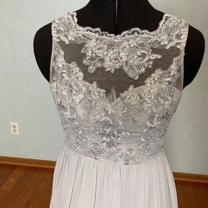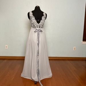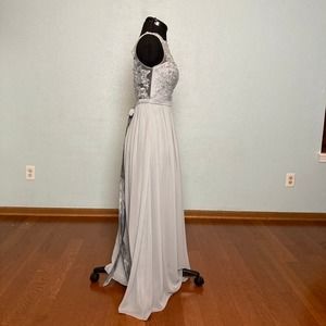 A0 S Azazie Gray Lace illusion neck mesh backless Dress Formal Prom Slit belted