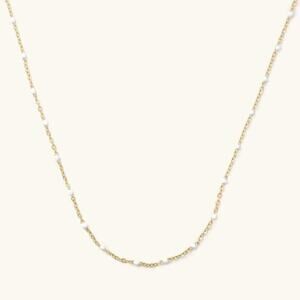 🆂🅰🅻🅴 A006-A • Nikki Smith Delicate Gold Chain Necklace with White Beads