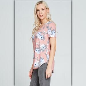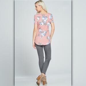 Crisscrossing straps put a modern twist on a soft knit top colored with a cool floral print.