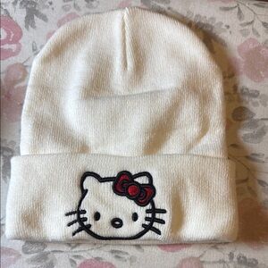 Stay warm and stylish with this Hello Kitty knit beanie, featuring a charming embroidered design of the iconic character with a red bow. Crafted from soft, stretchy material, this white and red hat is perfect for adding a playful touch to your winter wardrobe.