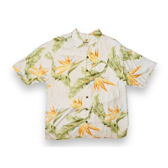 A1 Tommy Bahama Silk Button Front Short Sleeve Shirt Top Large Mens Birds of  paradise
