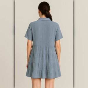 A171-B ✽ Blue Tiered Collared Gauze Mini Dress
