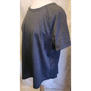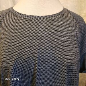 DESCRIPTION: Black and gray athletic shirt. Scoop neck in front slit in back up to about the middle of the back. (See pic 5)