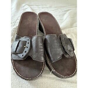 A2 Aerosoles Brown 2.75" Wedge Platform Sandal Size 7.5 Wide Leather Strap