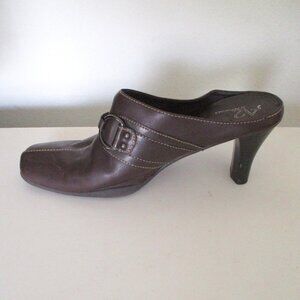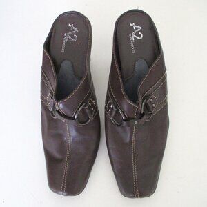 A2 by Aerosoles "Snapezoid" Womens Brown Leather Mule w/3" Heel - Size 7M