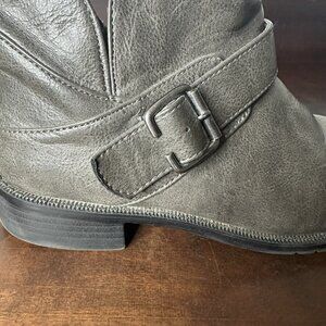 A2 by Aerosoles Women’s Leather Boots 7 Gray Block Heel Strap Buckle Booties