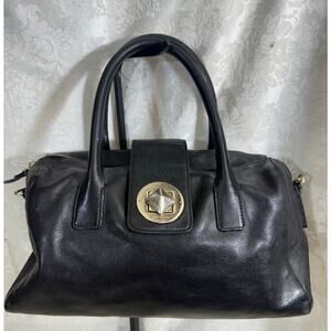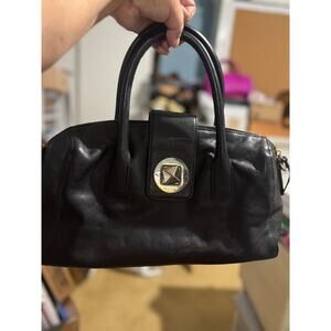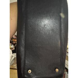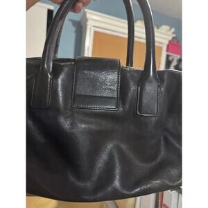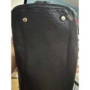 Has some stains on interior and tarnishing on hardware. The leather is in good shape.